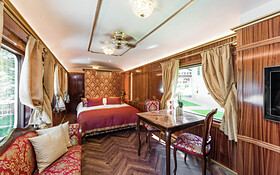 Un soggiorno eccezionale in un originale treno ferroviario - suite di lusso nel vagone: mobili in mogano lucido, rubinetteria di alta qualità, piastrelle di Versace, nobili tessuti e un velo di nostalgia. Aria condizionata e riscaldamento a pavimento garantiscono un piacevole clima interno. (prezzo per un massimo di 2 adulti e 2 bambini)