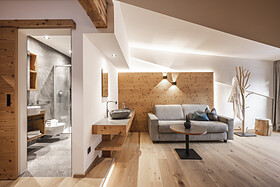 Novità da dicembre 2022! Junior suite con soggiorno, camera con letto matrimoniale e 2 letti singoli per i bambini (circa 35 m²), 5° e 6° persona sul divano divano letto nel soggiorno. Ggrande TV a schermo piatto da 38 pollici, W-Lan gratuito, cassaforte, telefono, minibar, bagno con doccia, WC, bidet, grande specchio e asciugacapelli. L'immagine e l'arredamento della camera possono variare.