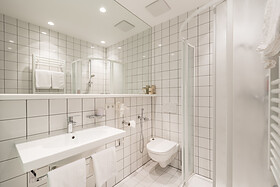 Le nostre camere "superior" sono dotate di comodi letti boxspring, un'entusiasmante TV a schermo piatto da 38´´, cassaforte, telefono e minibar. Le stanze da bagno sono dotate di doccia, WC, ampio specchio e fon. Alcune camere dispongono anche di un balcone (supplemento 10,00 Euro/giorno). L' immagine e l'arredamento della camera possono leggermente variare.