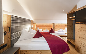 Le nostre camere "superior" sono dotate di comodi letti boxspring. 3° e 4° persona in letti confortevoli aggiunti oppure letti a castello. Un'entusiasmante TV a schermo piatto da 38´´, cassaforte, telefono e minibar. Le stanze da bagno sono dotate di doccia, WC, ampio specchio e fon. Alcune camere dispongono anche di un balcone (supplemento 10,00 Euro/notte) L' immagine e l'arredamento della camera possono leggermente variare. (per prenotazioni per meno di 4 persone può essere assegnato anche una camera più piccola)